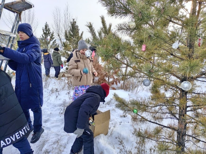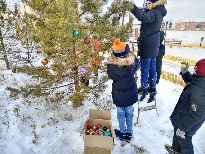 Они стали активными участниками в украшении территории храма. Нарядили елки, делали фигуры из снега, расчищали дорожки.