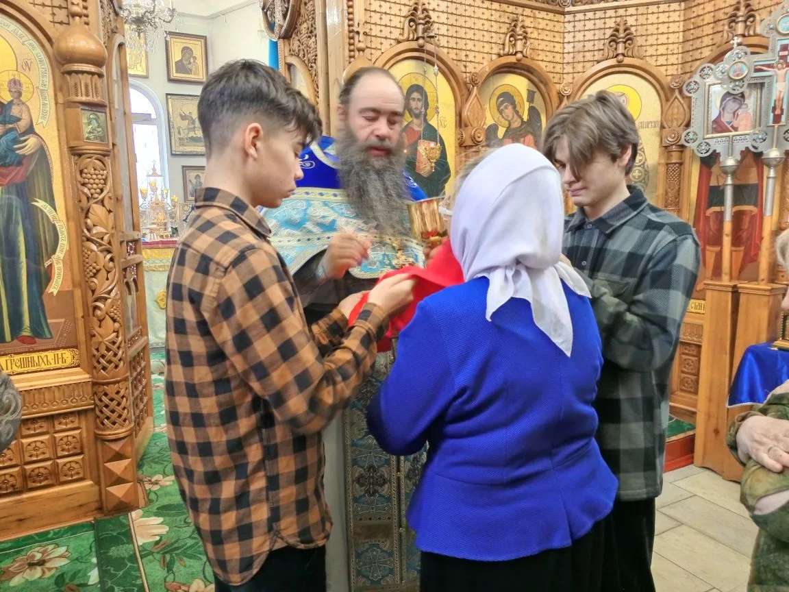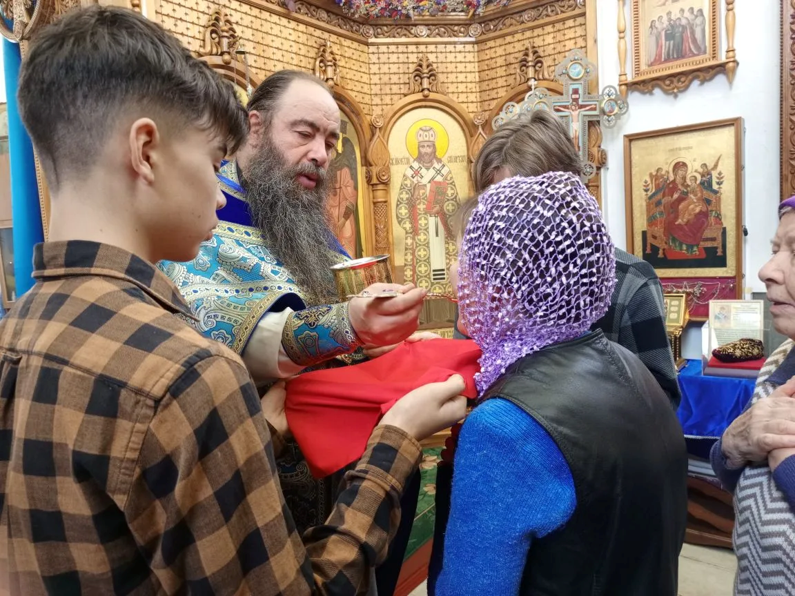 Отец Евгений поздравил причастников с принятием Святых Христовых Тайн и всех прихожан с праздником Казанской иконы Божией матери и Днем народного единства.