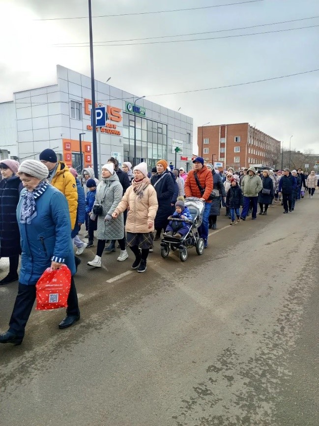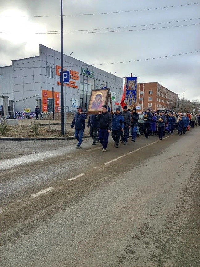 Казанская икона стала символом объединения Руси в начале XVII века. И сегодня православных верующих традиционно объединил крестный ход в честь иконы Царицы Небесной. Участники шествия с хоругвями, иконами и фонарями выстроились на улице. Многолюдная река протекла по центральным улицам города. Около 200 горожан с молитвенным пением следовали за чтимым образом Богородицы. Многие взяли с собой свои домашние иконки Богородицы, чтобы вместе с ними пройтись по городским улицам. Люди молились о самом сокровенном, о своих близких, о мире.