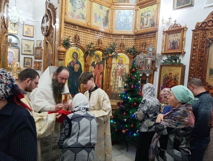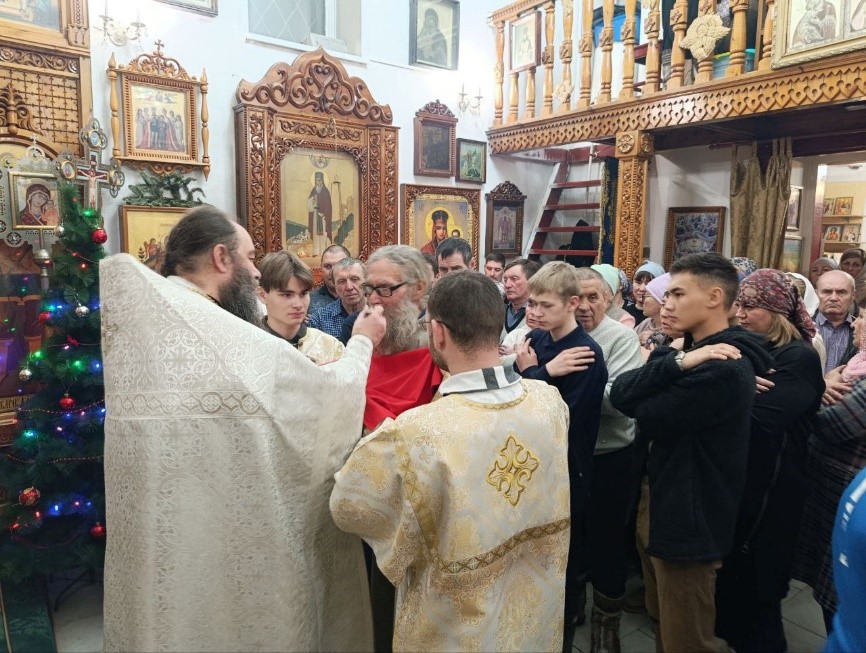 В завершение праздничной службы протоиерей Евгений поздравил всех со светлым праздником Рождества Христова и пожелал каждому в новом году выстроить свои отношения со Спасителем — стать Ему родным и близким.